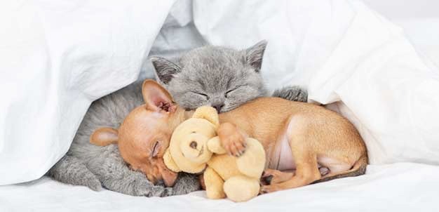 Dog and cat in bed: that sense of safety and security